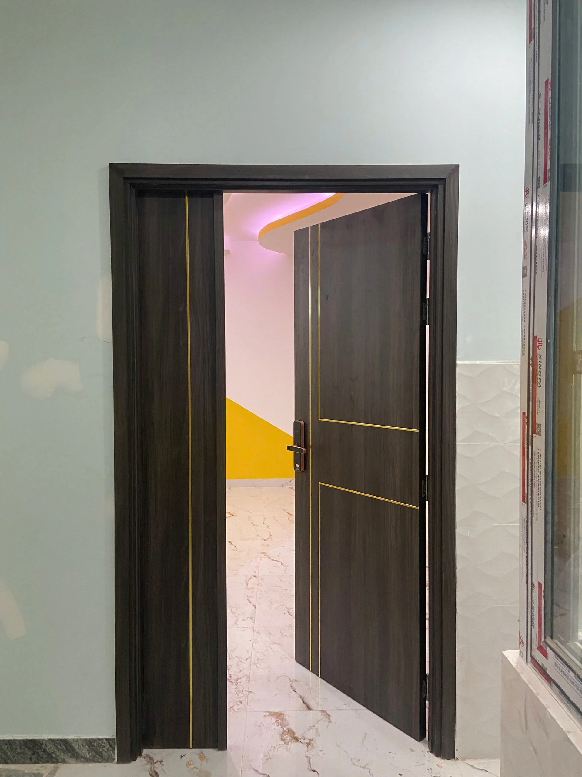 - Công lắp đặt một bộ cửa gỗ MDF Veneer là 350.000đ/bộ (đã bao gồm chi phí bắn foam và silicon quanh cửa).